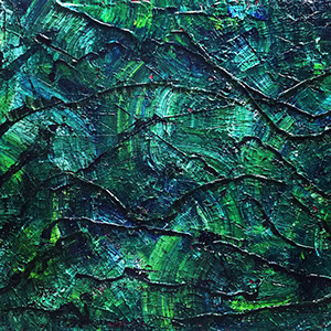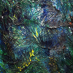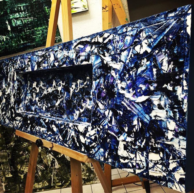 Él define su obra como visual abstracta, en la que Predominan los colores que evocan elementos naturales como el agua, las plantas, el cielo nublado, el mar, la electricidad, el espacio (diferentes tonos de azul, verde, gris) y las formas orgánicas y relativas a la naturaleza.